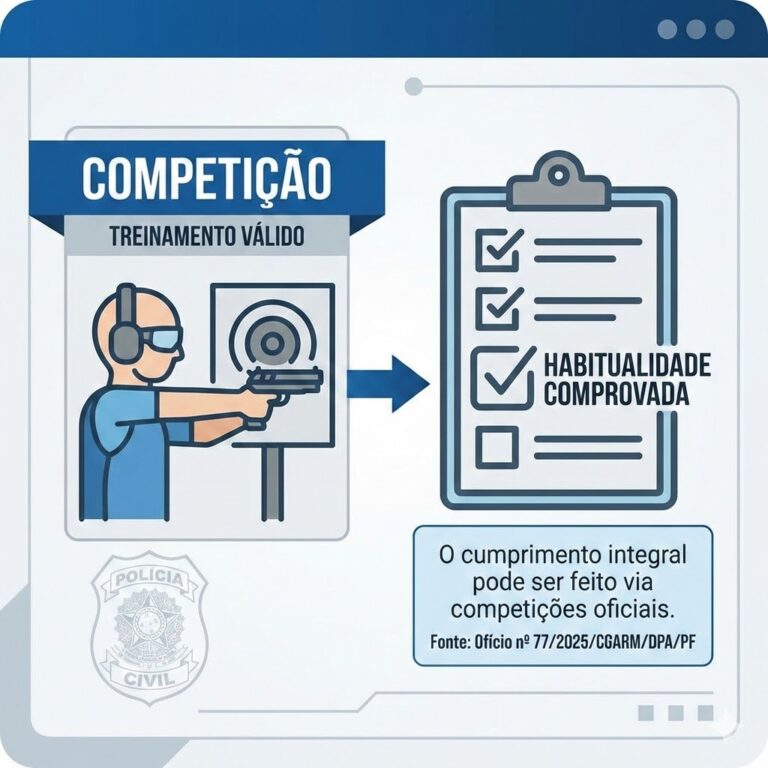O documento detalha as cargas mínimas anuais para os Níveis 1, 2 e 3, reforçando que a comprovação deve ser feita por arma representativa de cada tipo. A medida valida a participação em eventos distintos e documentados como alternativa plena aos treinamentos convencionais.
