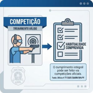 A Polícia Federal do Rio de Janeiro emitiu o Ofício Circular nº 17/2025 estabelecendo que a “efetiva necessidade” na renovação de CRAFs desportivos se comprova pela prática do tiro e filiação a clubes, não se aplicando as exigências restritas de defesa pessoal.
